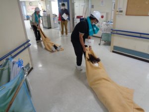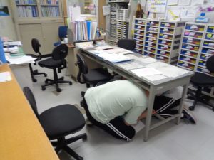 本日、当施設にて地震発生を想定した避難訓練を実施いたしました。今回の訓練では、地震発生直後の身の安全の確保、揺れが収まってからの避難誘導を行いました。